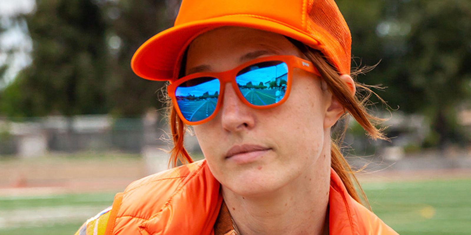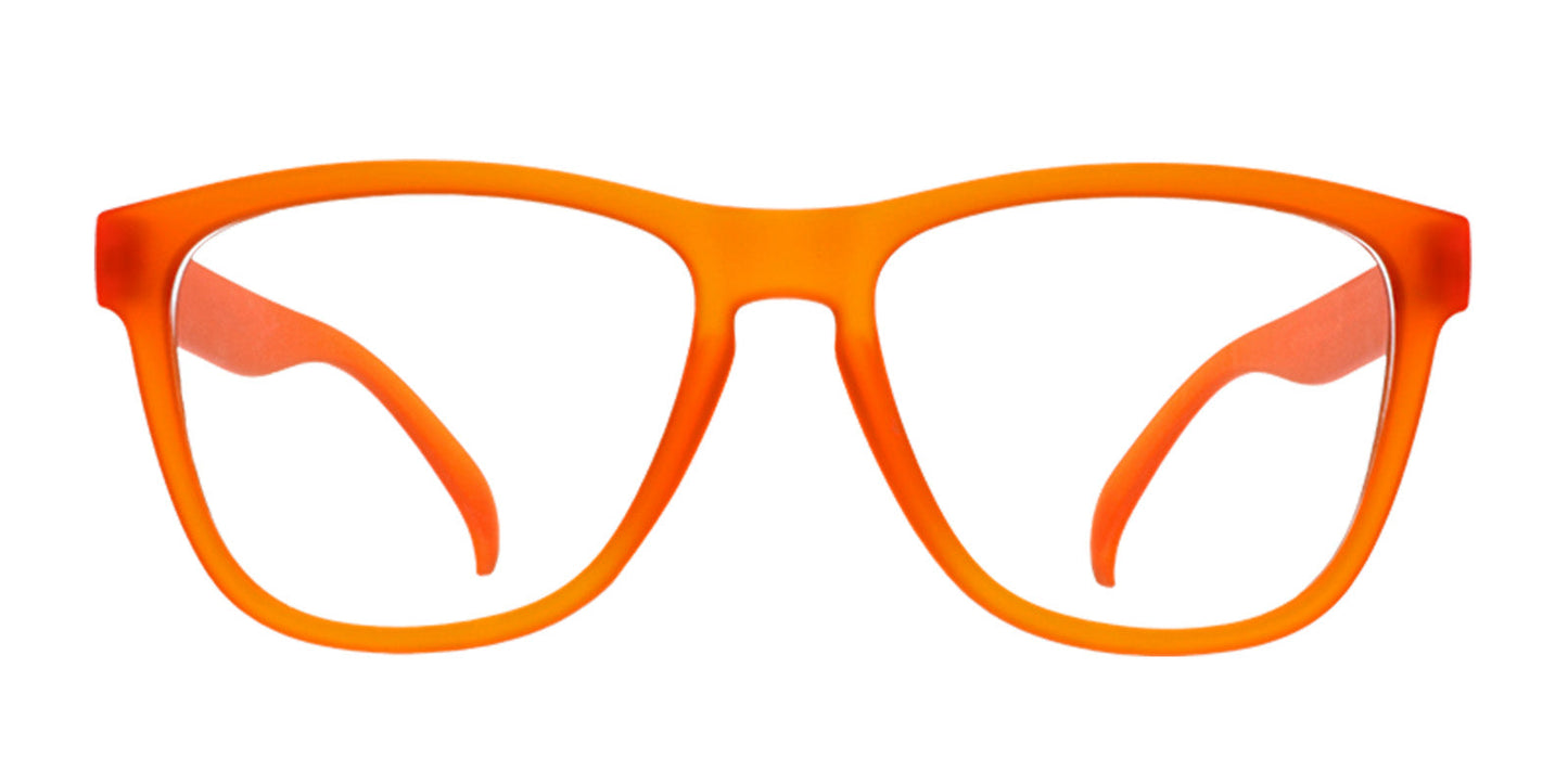 Stand out from the drove with these orange and blue sunglasses in our classic OG frames. No-slip shades for extreme grazing.