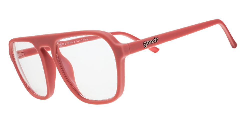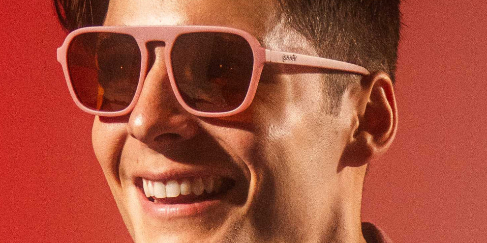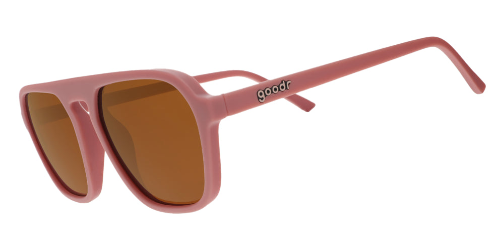 Threaten everyone with a good time with these light pink vintage-inspired square aviator frames and brown, non-reflective lenses. Won't slip or bounce while you hustle at the roller rink like it's 1979. It's like everything is new again. Go ahead, stretch, show off that armpit hair. Some people say, "Stop and smell the roses." We say, "Stop and smell the pit-unias."