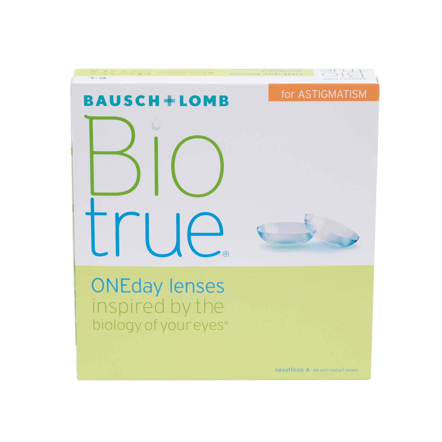 Improve your view with Bio true ONEday daily disposable contact lenses. These lenses help reduce halos and glare for astigmatism sufferers, provide UVA/UVB protection, and retain moisture to deliver clear and comfortable vision from morning to night.